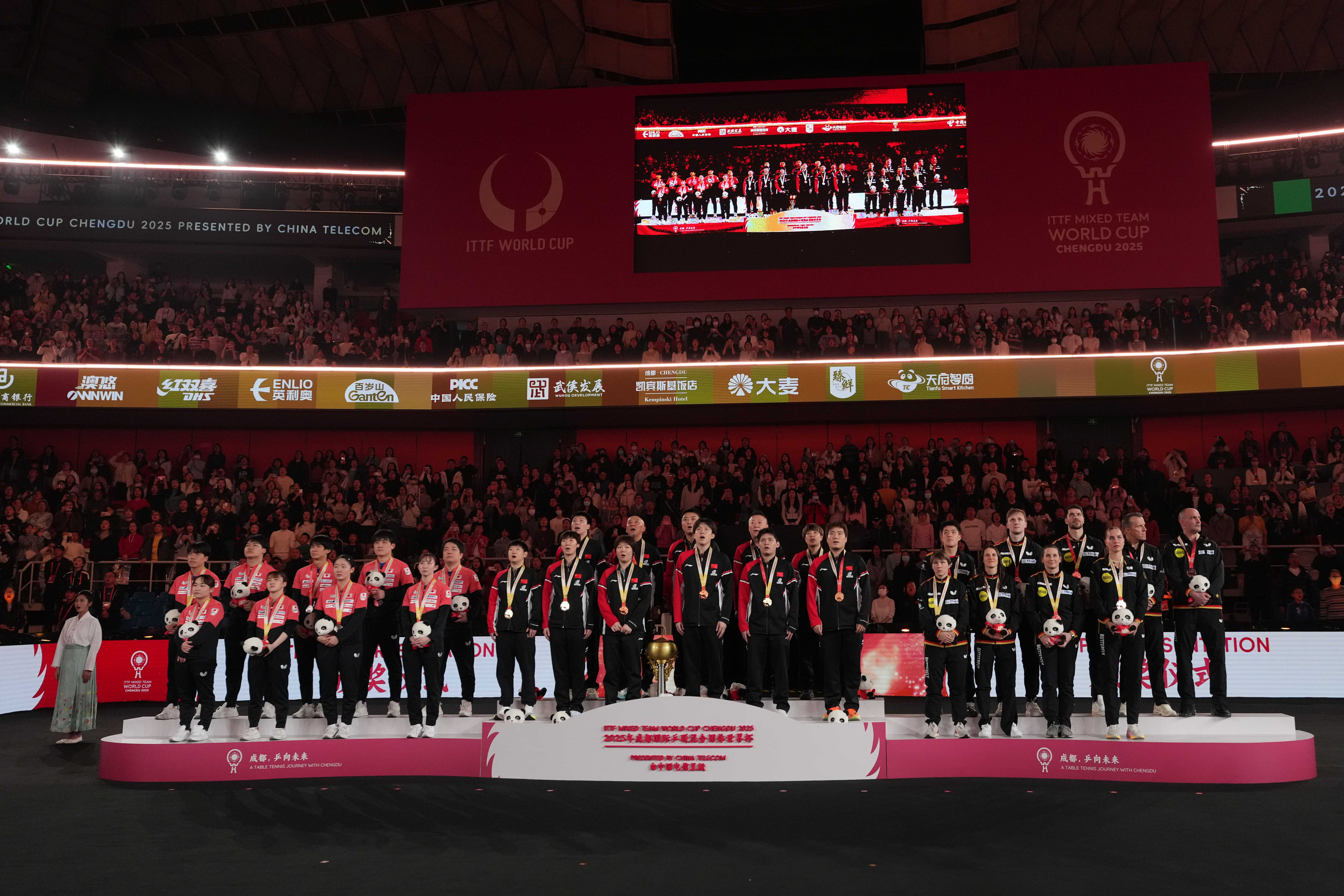 12月7日晚,2025年国际乒联混合团体世界杯在成都落下帷幕。中国队在决赛中以8比1的比分战胜日本队,以11战全胜的完美战绩,连续第三年夺得该项赛事的冠军。自2023年赛事创办以来,中国队包揽了全部三届冠军,展现了在这一项目上的绝对统治力。